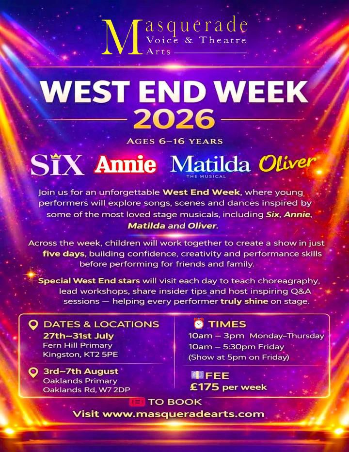 We offer a variety of fantastic Easter, Summer & Half Term Holiday Workshops in Ealing & Kingston. Students use singing, dance and acting skills to workshop, rehearse, & perform West End Musicals and special themes for our younger students. All our workshops are designed to captivate the imagination and bring out the best in all who participate in a fun filled, energetic, exciting and safe environment. Each workshop has a special final day full of performances and surprises. Industry professionals with fully enhanced DBS checks run all our workshops.